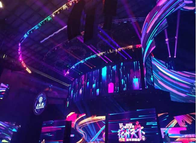 相信很多观众都被四川卫视的舞台效果震感到了,尤其是其美轮美奂的身临其境之感。例如舞台对水的表达,水的表达是科技的,用地面屏幕( 由米兰milan提供的地转屏P4.81)的形式,将舞台的平面作为视觉表现的媒体平台,用视频内容去烘托展现艺人的表演,将平面立面的舞台视觉呈现来增强舞台的空间表现关系。