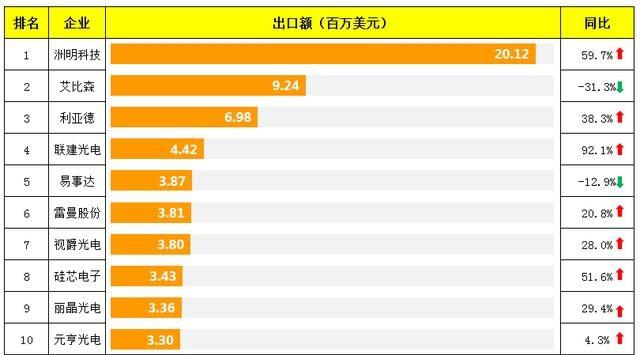 LED显示屏产品出口市场规模从2012年的6.24亿美元增长至2016年12.87亿美元,年均增幅24.5%。以2017年第一季度中国LED出口情况为例:
